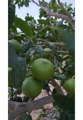 Aspetto: Il frutto ha dimensioni simili a un'arancia, con una forma che può essere ovale o piriforme. La buccia, dalla quale si estrae l'olio essenziale, è inizialmente verde e diventa gialla a completa maturazione.